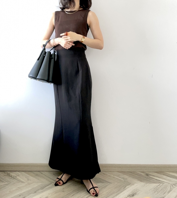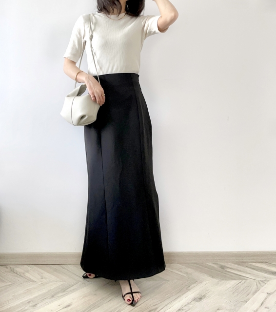 - シンプルなトップス×ストレートシルエットのマーメイドスカート