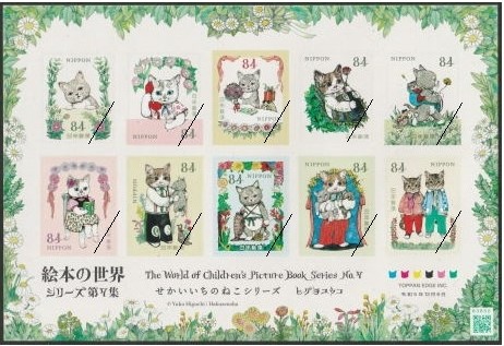 - 特徴: ヒグチユウコさんの絵本『せかいいちのねこ』シリーズを題材とした特殊切手です。